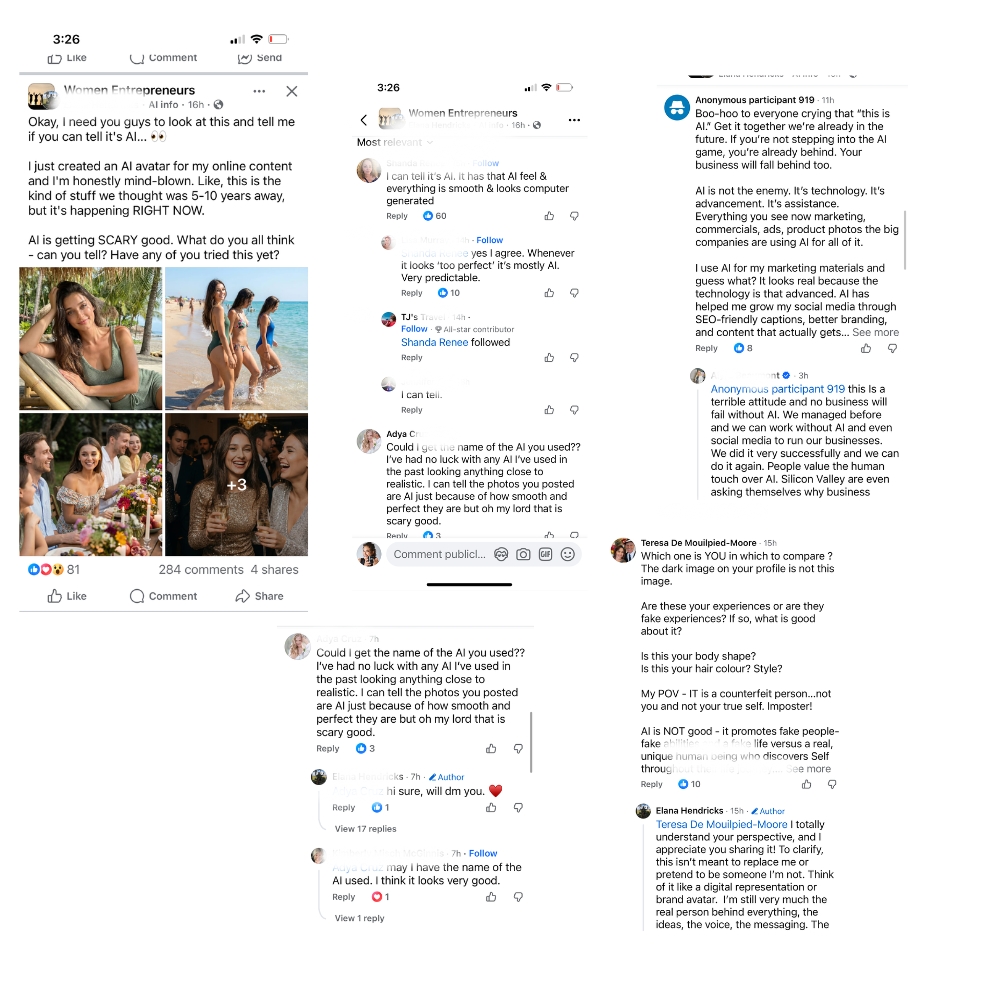 A post with an āAI avatarā that looks like a model on vacation while the real person is probably in sweatpants watching Netflix pops up in one of the Women Entrepreneur groups I am in.