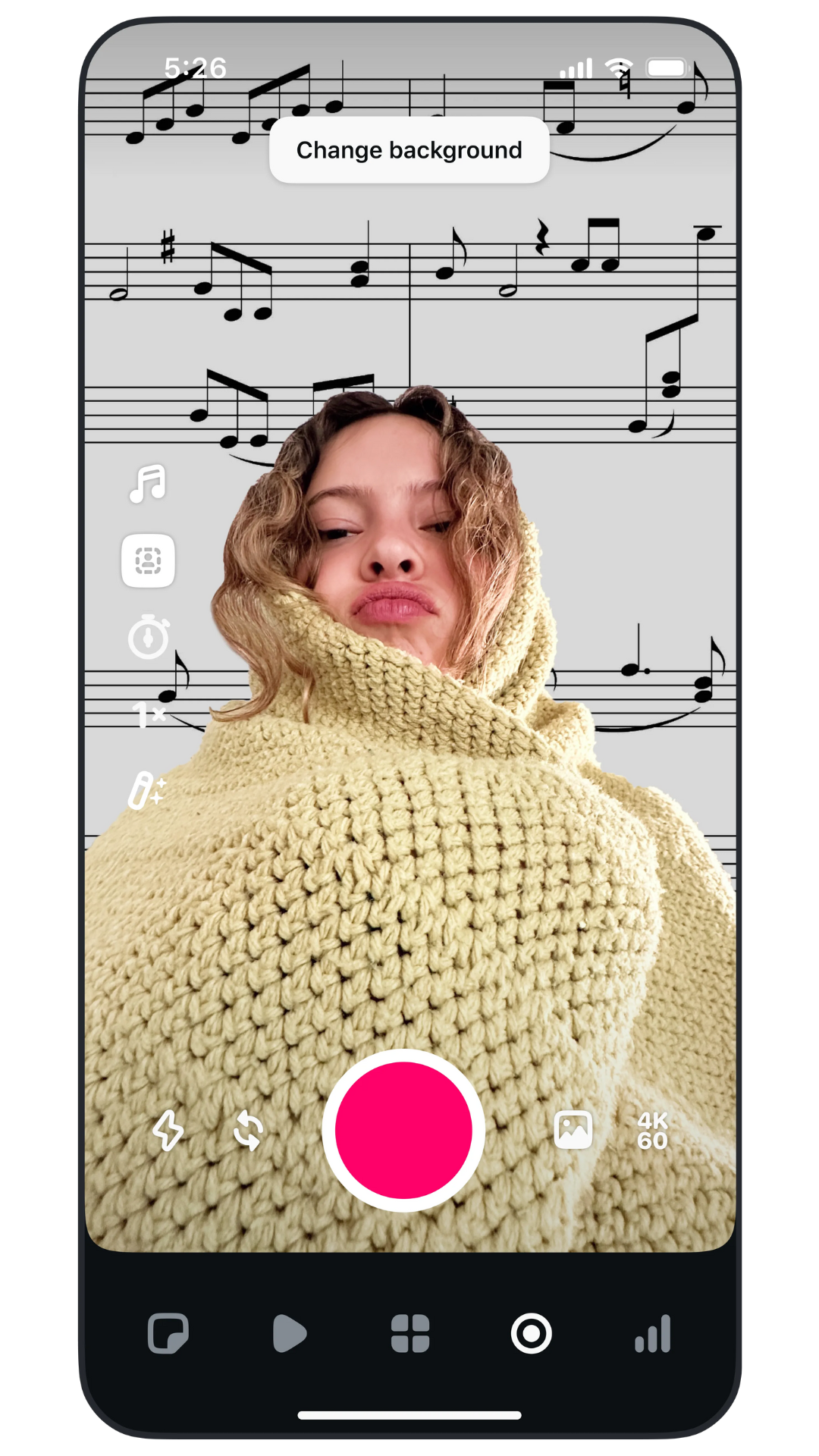 Green screen: Easily replace and edit backgrounds in one tap with green screen.