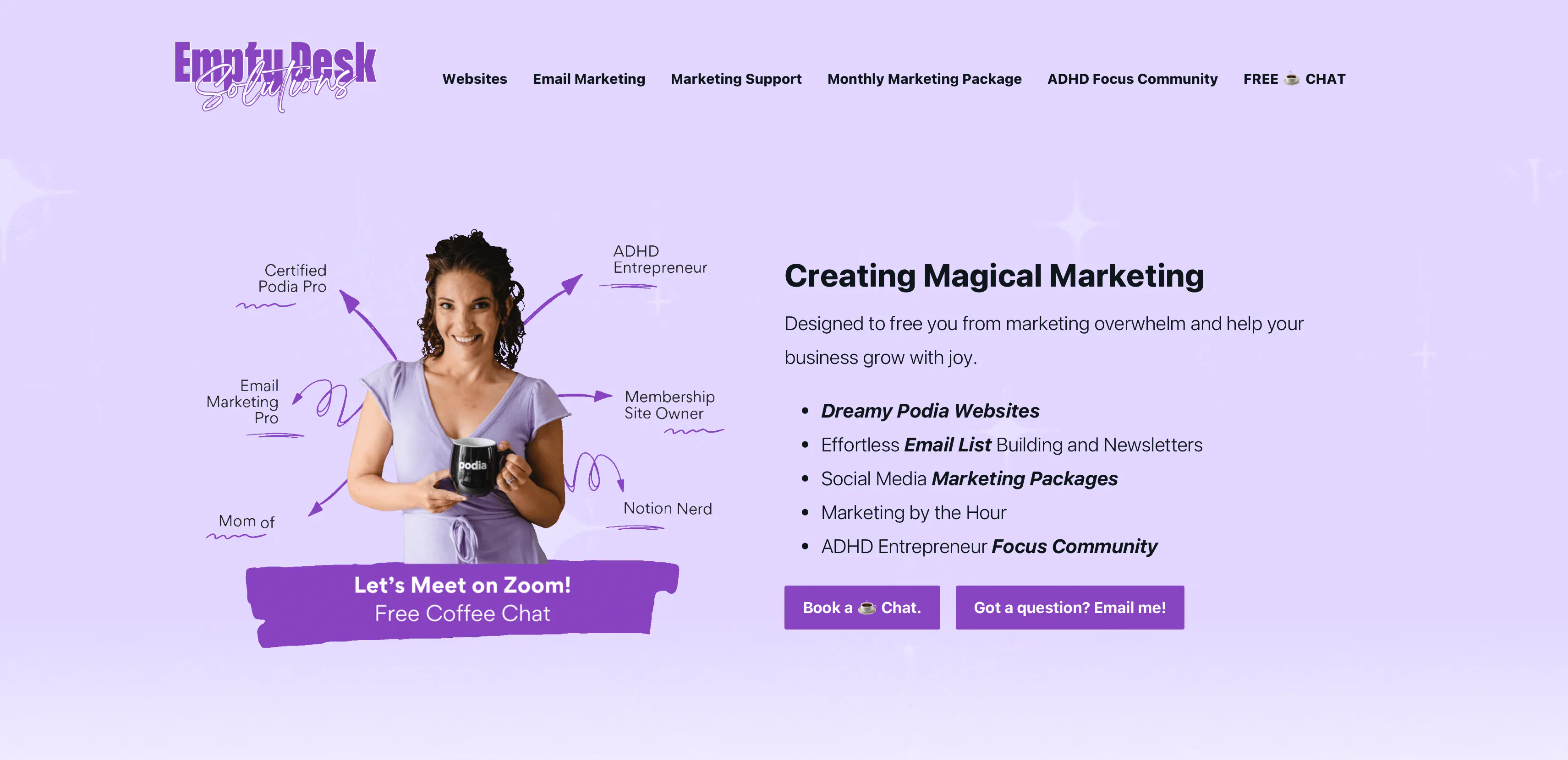 I was adding to my Podia Pro Website Design page and adding the addition of my new ADHD Focus Community (leveraging Podia's community feature 🎉) and I thought my homepage could use a little refresh.
