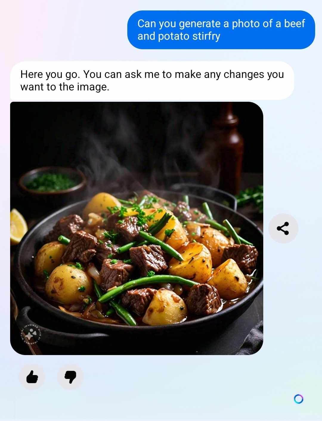 Some interesting recommendations, nothing too crazy! It wasn’t able to combine all 3 items. I am curious about this Beef and Potato Stirfry though… next I want an image.