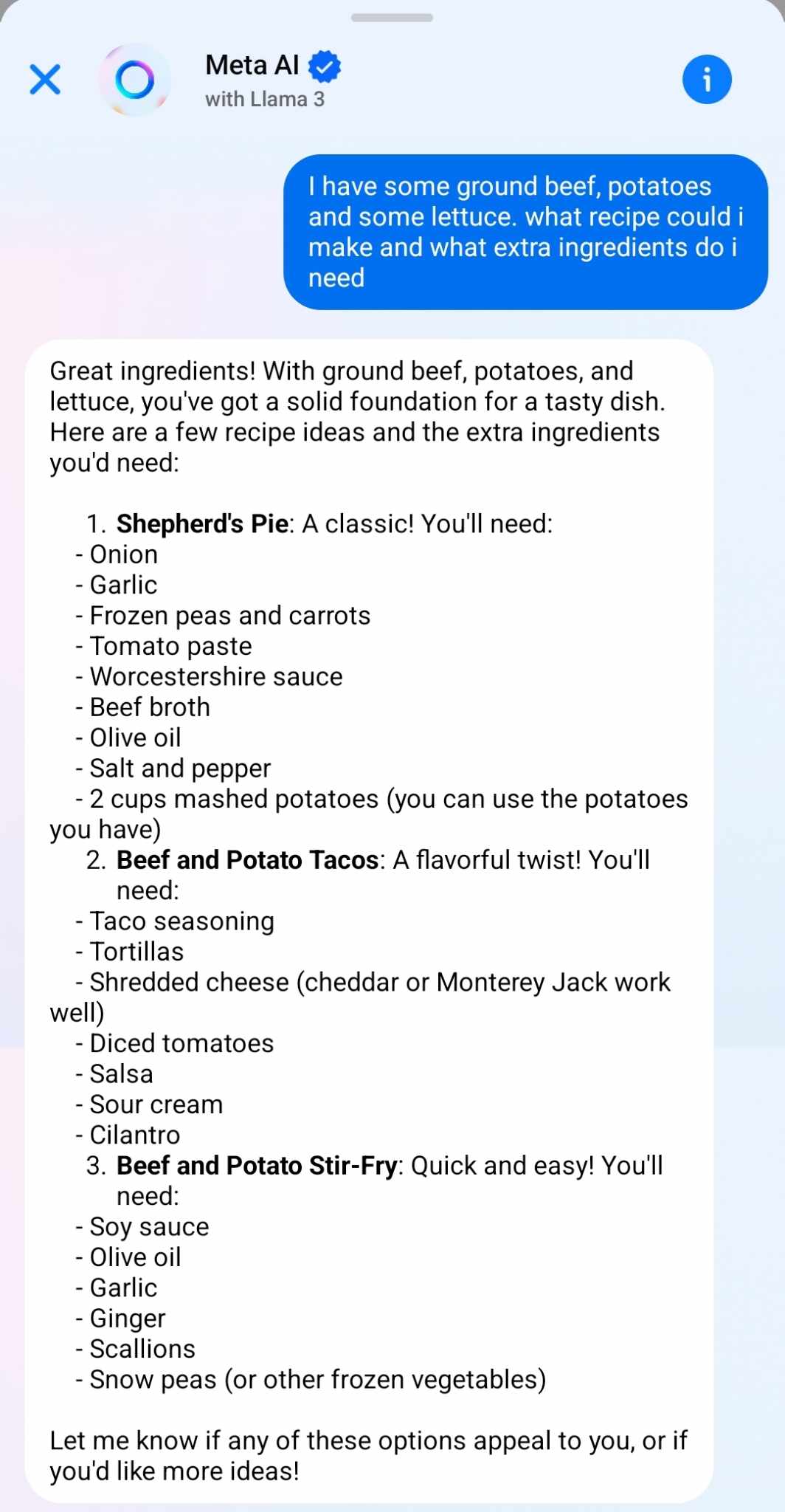 Not too shabby honestly! So what do you think? Would YOU make this leftovers Beef and Potato AI stirfry? If you do try out Meta AI, let me know about your fun explorations!
