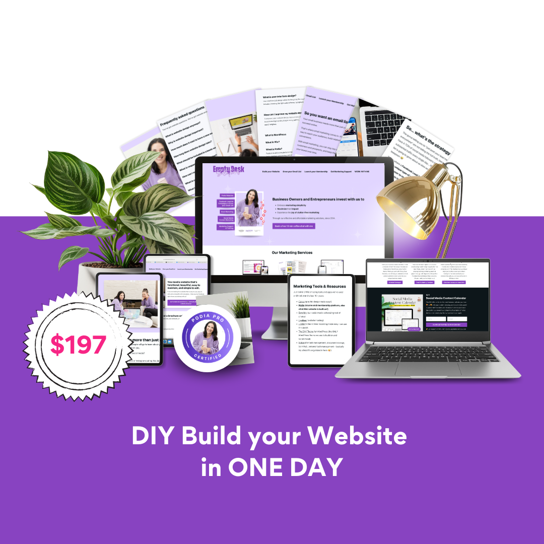 The DIY course is a do it at your own pace program with easy to follow step-by-step videos so that you can get through to the end and launch your site in less than a day!